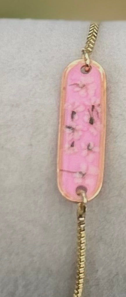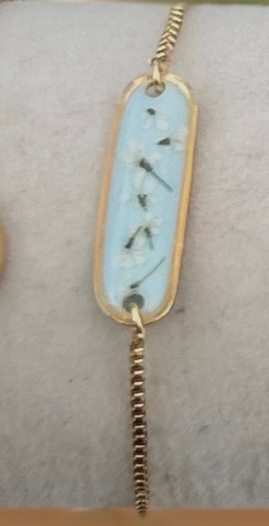 Adjustable 8-inch stainless steel bracelet chains featuring real preserved flowers. Made to last, tarnish-resistant, and one of a kind.